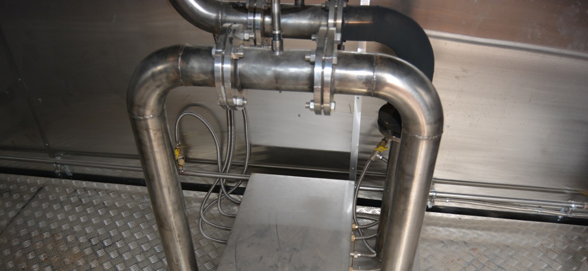 Труба Z-образной формы имитирует утечку газа через фланцы, расположенные на вертикальных участках трубопровода при помощи горелок, к которым подается газ. В имитаторы фланцев встроены запальные и рабочие горелки.